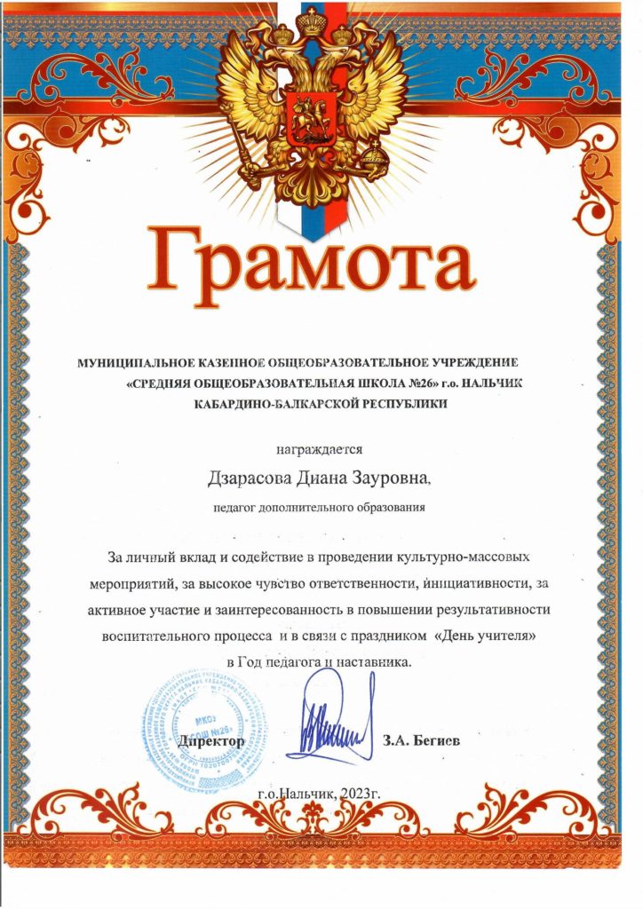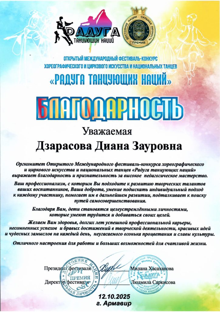 Для Дзарасовой (Достижения, награды и поощрения)