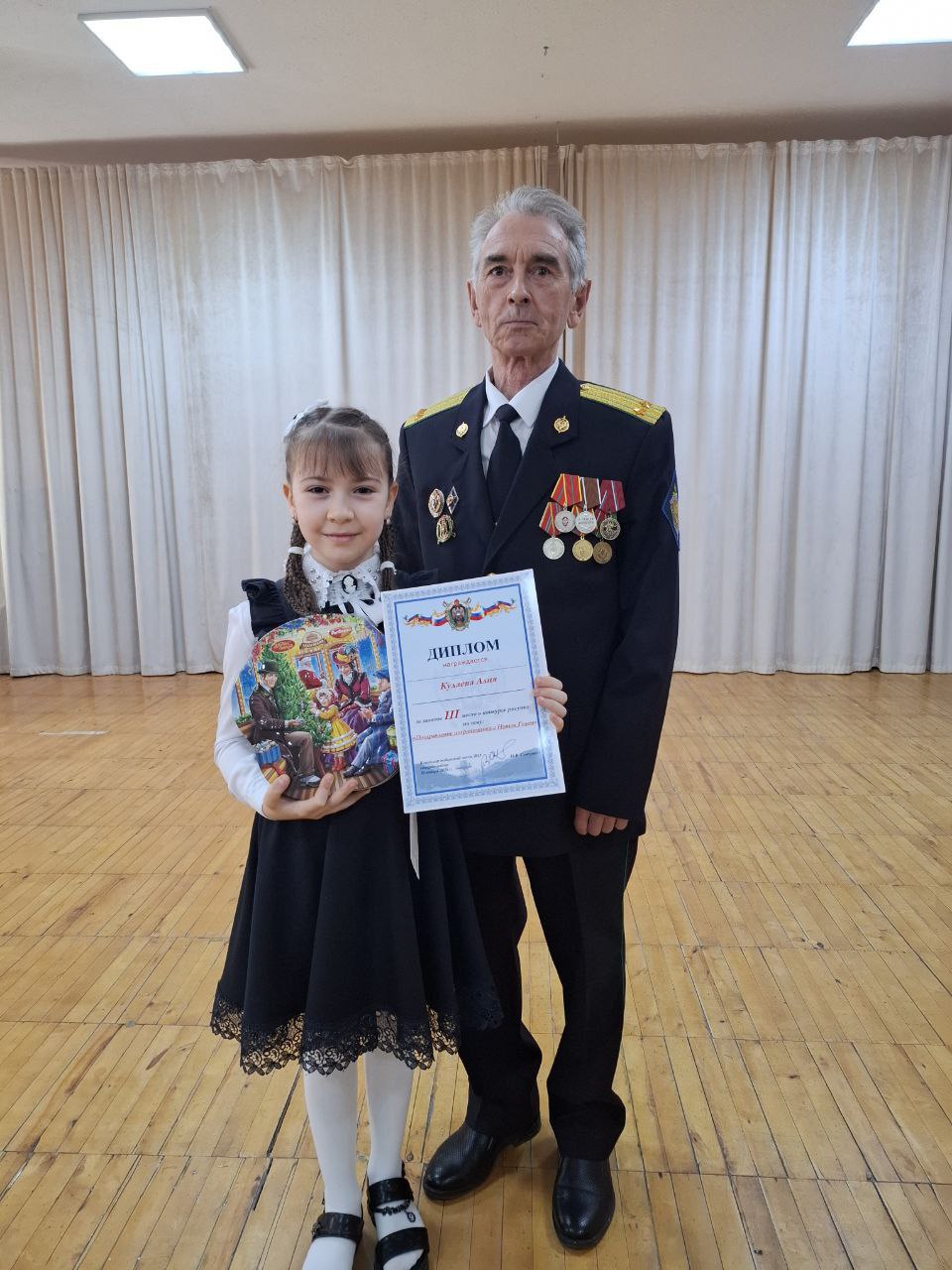 Сегодня же мы стали свидетелями особенного события: представители Совета ветеранов пограничников пришли к нам, чтобы лично наградить авторов самых лучших открыток. Ребята получили заслуженные грамоты и сладкие подарки от ведущих кондитерских фабрик страны.