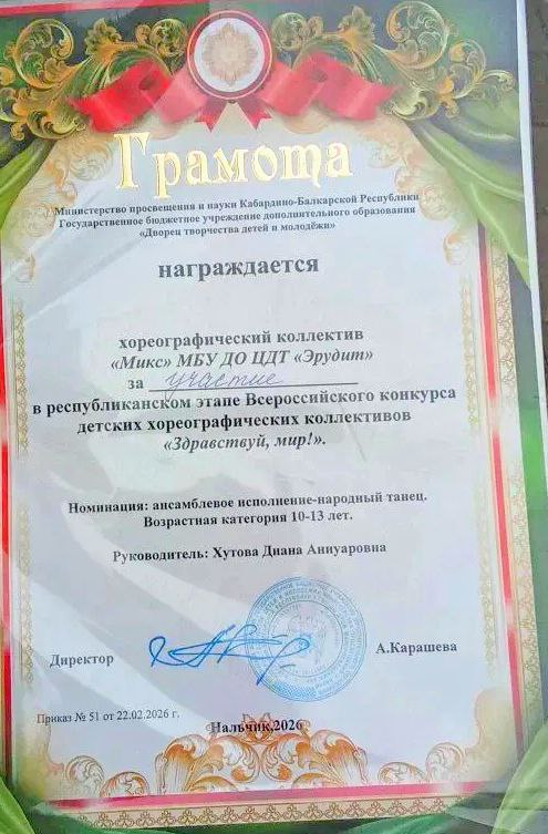 На этом ярком событии достойно представил себя хореографический ансамбль национальных танцев «Микс» под руководством педагога дополнительного образования Хутовой Дианы Аниуаровны.