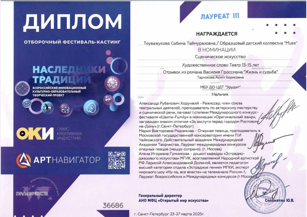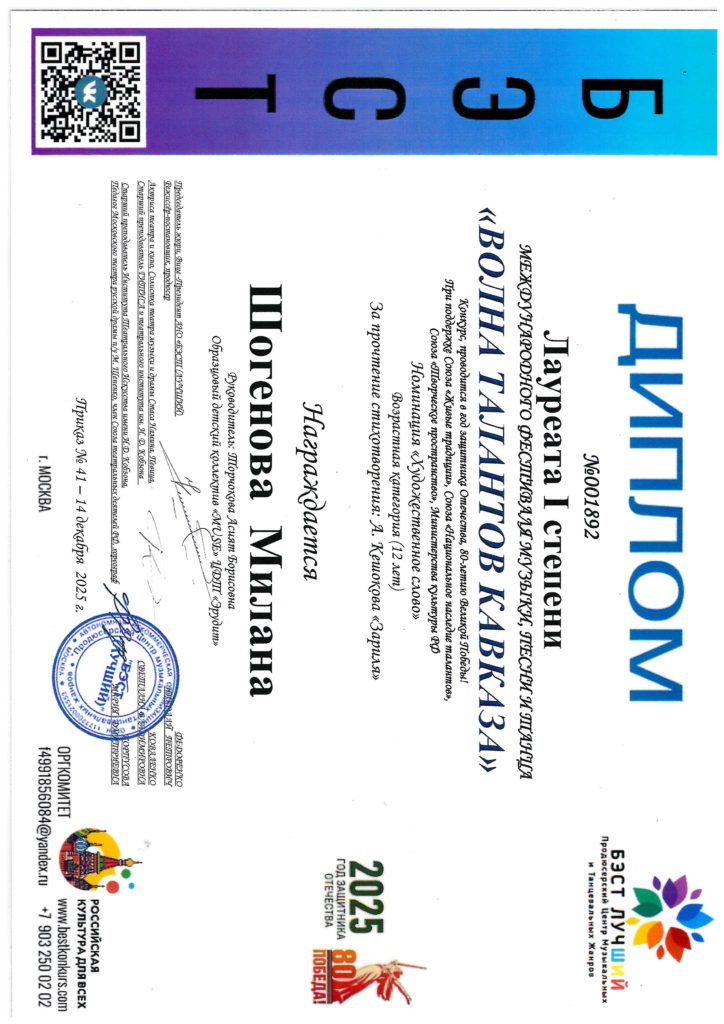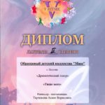 3. Хочу сказать слова благодарности педагогу Тарчоковой Асият Борисовне и всему коллективу театра Muse. Мой сын всегда был очень стеснительным, и отдать его на сцену было для нас маленьким подвигом. Но Асият Борисовна смогла сделать невозможное — она раскрыла моего сына!